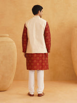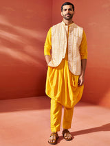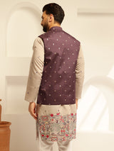 A Nehru jacket for men gives structure without bulk. It frames the shoulders, sits close through the chest, and adds a neat band collar for a clean finish.