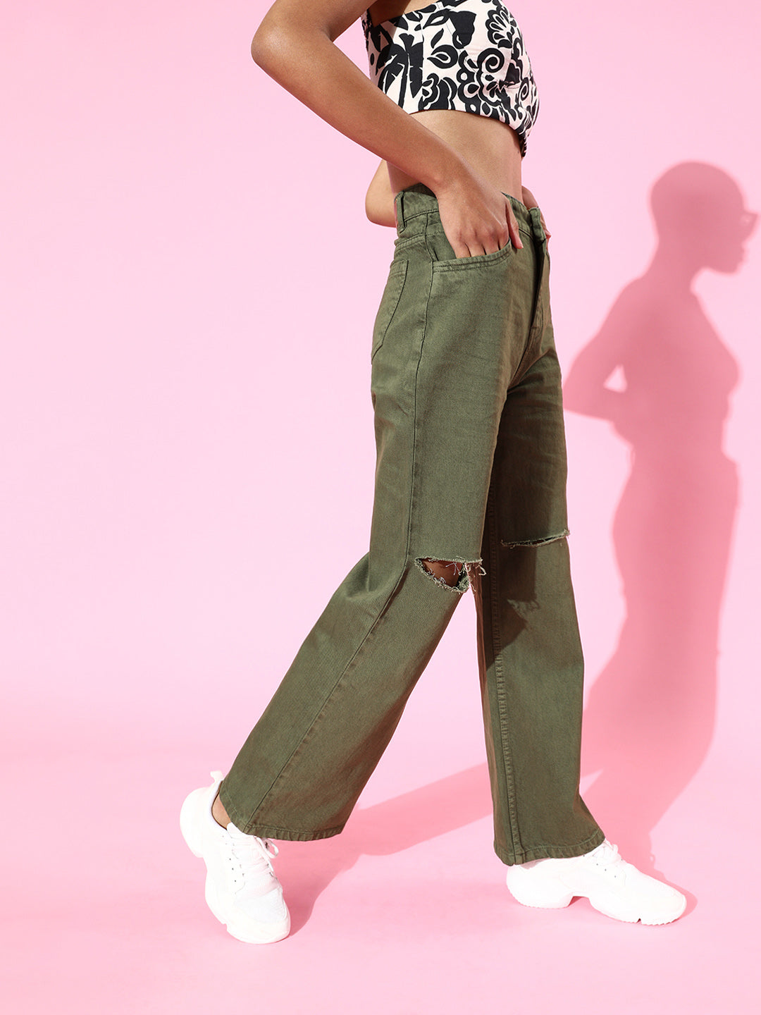 Women's Olive Casual Wide Leg Jeans